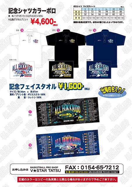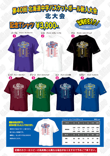 第40回 北海道中学校バスケットボール新人大会 南北大会 記念品の予約受付中!