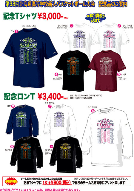 第38回 北海道高等学校バスケットボール新人大会 記念品の予約受付中!